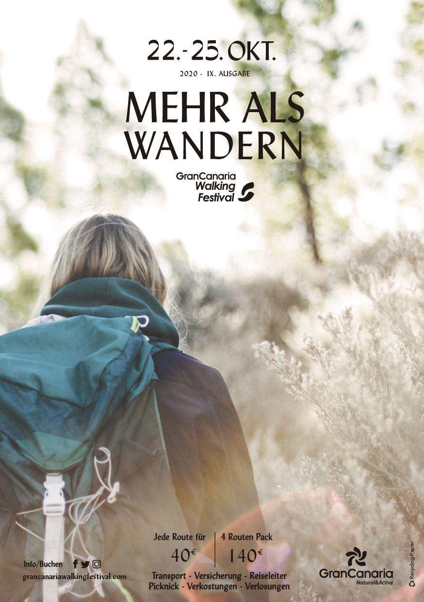 Das IX. Gran Canaria Walking Festival findet vom 22. bis 25. Oktober 2020 statt. Unterschiedliche Wandertouren bieten eine einmalige Chance die Natur, die vielfältige Landschaft, die Kultur und die vielfältigen Lebensmittel zu erleben. Naturliebhaber und Wanderer aus der ganzen Welt nehmen jedes Jahr an dem Festival teil.