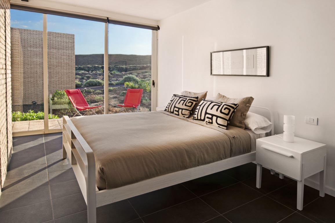 Die stylische Casa Alisios kommt ganz ohne Innen-/ und Zwischenwände aus, so dass sich eine großzügige und offene Wohnsituation ergibt. Die Inneneinrichtung besticht durch komfortables und hochwertiges Mobiliar. Harmonisch in die Landschaft des ITER-Windparks (Windräder bestimmen das Landschaftsbild) liegt das Ferienhaus inmitten des Naturparks Montaña Pelada unweit des Meeres in der Nähe des Ortes El Medano. Seien Sie Teil eines einzigartigen Projektes! Genießen Sie die einmalige Atmosphäre der gesamt 24 Häuser -Casas Bioclimáticas- und einem Besucherzentrum, die aus einem internationalen Architektenwettbewerb als autarke, bioklimatische Siedlung entstanden sind. Beim Bau des Nichtraucher-Domizil Casa Alisios wurden umweltschonende Baumaterialien wie vulkanisches Gestein, Holz und Ton verwendet. Dadurch entstand eine ganz eigene Wärme und ein besonderer Wohn-Charakter.