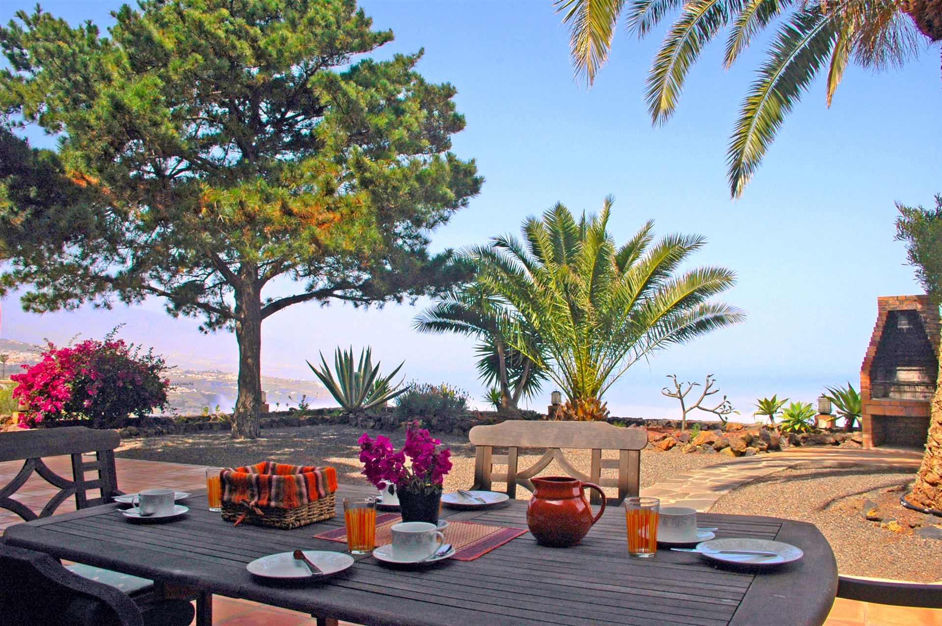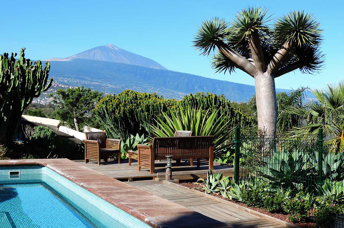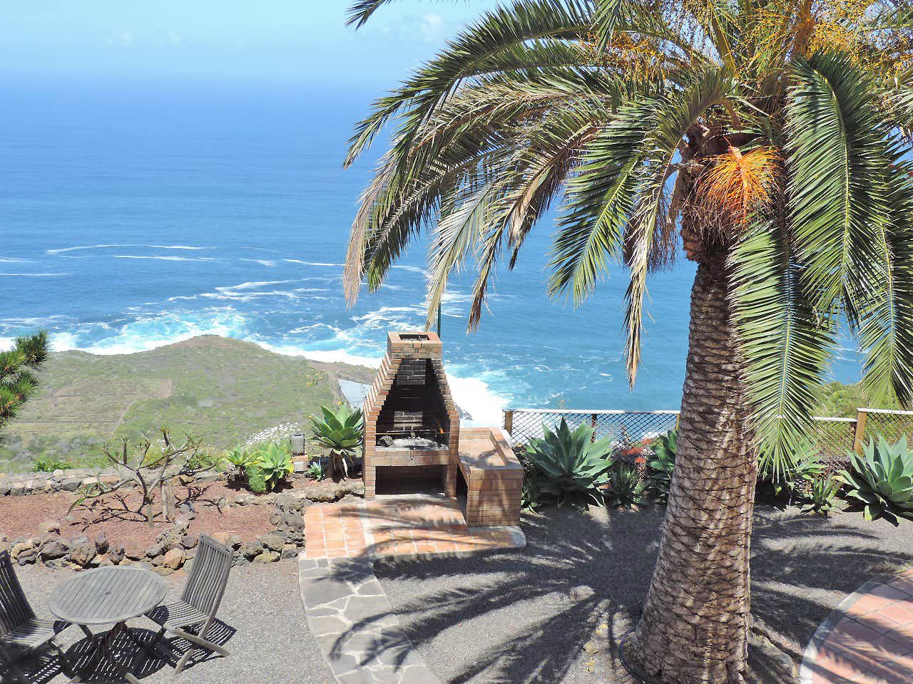 Die kleine, wunderschön gepflegte und familiär geführte Anlage Hidalgo liegt ca. 250 m oberhalb des Meeres in Hanglage mit einem atemberaubenden und fantastischen Ausblick auf das Meer und die gesamte Nordküste von Teneriffa. Unter dem sogenannten "Sonnengürtel" von La Matanza wachsen auf dem 10 000 m2 großen, Park ähnlich angelegten Grundstück mit gesamt 9 Wohneinheiten tropische Früchte sowie eine Vielzahl an verschiedenen Palmen und Kakteen. Die Turmhauswohnung im Erdgeschoss verfügt über eine großzügige Terrasse mit einem traumhaften Blick auf die Nordküste der Insel.