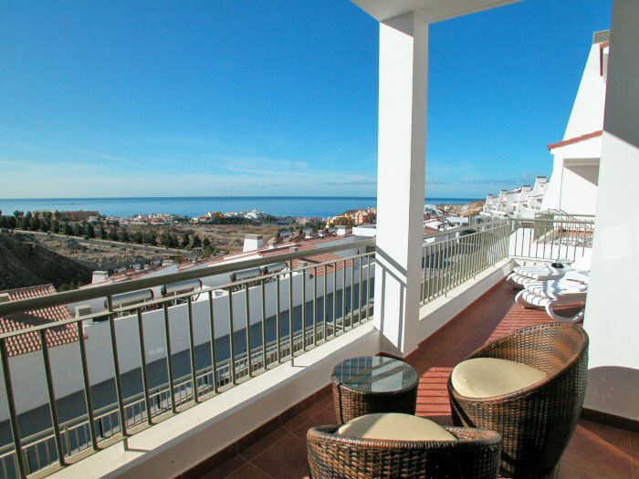Von der Terrasse können Sie den Weitblick auf den Fischerort La Caleta und das Meer genießen.