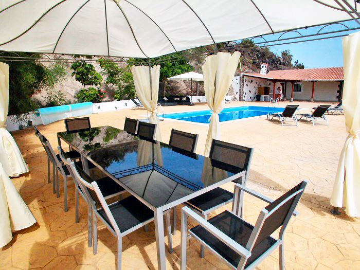 An der Westküste von Teneriffa am Ortsrand von Guia de Isora, in herrlicher privater Alleinlage, liegt die komfortable und moderne Ferienvilla Guia de Isora. Das großzügige und gepflegte Fincaanwesen setzt sich aus der Villa, der Gartenanlage und mehreren Terrassen zusammen. Die große Sonnenterrasse mit Meerblick, eingebautem Holzkohlegrill und privatem beheizbarem Pool ist uneinsehbares "Highlight" und verfügt über Sonnenliegen und Sonnenzelte mit Essplatz. Das Innere der Villa ist lichtdurchflutet und besticht durch eine geschmackvolle und gehobene Ausstattung. Wer ungestörte Entspannung in gehobenem Ambiente sucht, ist hier genau richtig!