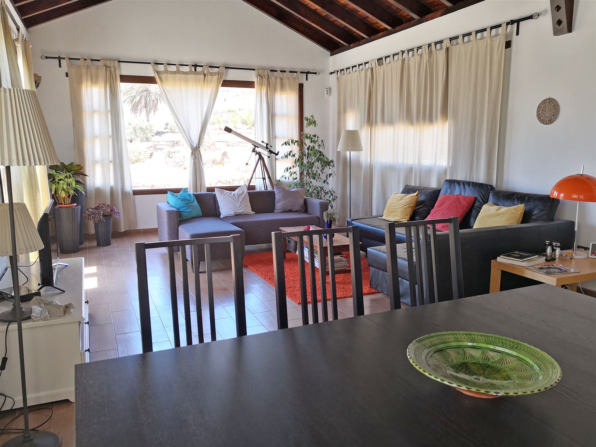 Abschalten, Wohlfühlen und einfach die Seele baumeln lassen! Dies findet man in dem reizvollen und charmanten Ferienhaus VINCA im Zentrum der Insel Fuerteventura am Rande des kleinen Ortes Agua de Bueyes. Die lichtdurchfluteten Räume in Kombination mit der Holzdecke im großzügigen Wohn-/ und Esszimmer mit angeschlossenem Küchenbereich bieten eine einmalige, behagliche Urlaubsatmosphäre mit Flair mit einer persönlichen Note. Das reizende Haus liegt leicht erhöht und verfügt über eine Photovoltaik Anlage. Dadurch können keine Wärmegeräte wie z. B. Föhn oder ein Bügeleisen benutzt werden. Die Lage ist ideal: abseits der touristischen Pfade, aber ein perfekter Ausgangspunkt für Entdeckungen und Erkundungen über die gesamte Insel.