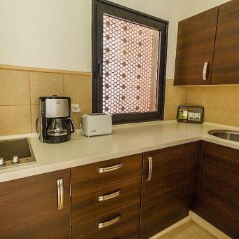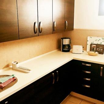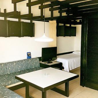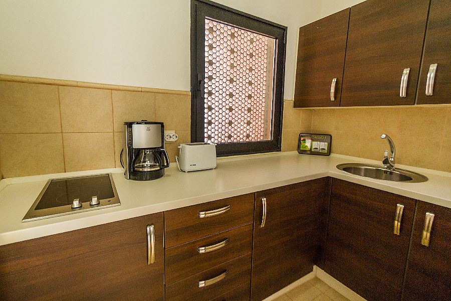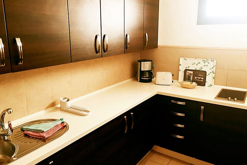 Die Badezimmer und der Terrassenbereich der Studios und des Appartements Typ C haben ein aktuelles und zeitgemäßes Design erhalten. Der Wohnbereich und teilweise die Küche der beiden Einheiten sind noch rustikal mit Holzelementen bzw. einfachen aber ordentlichen und sauberen Mobiliar eingerichtet.
