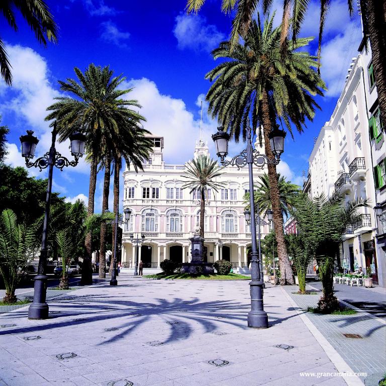 Las Palmas Die Hauptstadt Gran Canarias ist mit 370 000 Einwohnern die größte Stadt auf den kanarischen Inseln. Die einzelnen Stadtviertel haben einen überaus unterschiedlichen Charakter, ein Stadtzentrum im eigentlichen Sinn existiert nicht. Trotzdem findet man hier ein besonderes Flair. Neben einem herrlichen, weißen Stadtstrand - Playa de las Canteras - einem der längsten Großstadt-Sandstrände der Welt, gibt es einige historische Gebäude in der Altstadt. Ferner findet man eine Vielzahl von Museen, ein großes kulturelles Angebot, einen bedeutenden Hafen und ein modernes Geschäftszentrum mit vielen Einkaufsmöglichkeiten.