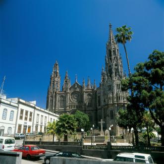 Arucas Die drittgrößte Stadt der Insel mit knapp 30 000 Einwohnern liegt am Fuße der Montaña de Arucas ca. 18 km westlich von der Hauptstadt Las Palmas entfernt. Auch "Hauptstadt der Bananen" genannt, wird der Ort von der in blauschwarzem Basalt errichteten Pfarrkirche überragt. Der "blaue Stein" wird in den nahegelegenen Steinbrüchen abgebaut. Gut erhaltene Patrizierhäuser im kolonialen Stil zeugen vom einstigen Wohlstand des Ortes. Ortstypische Produkte ist der Zuckerrohr und der daraus gebrannte Rum der ansässigen Fabrik.