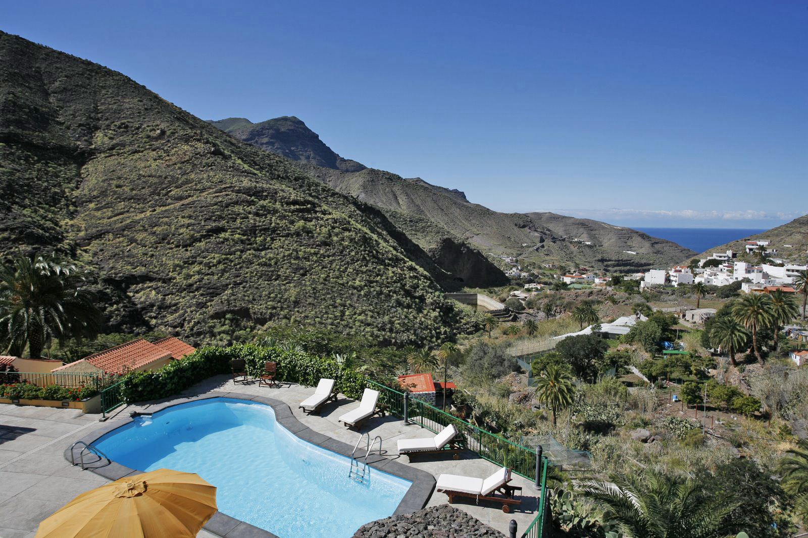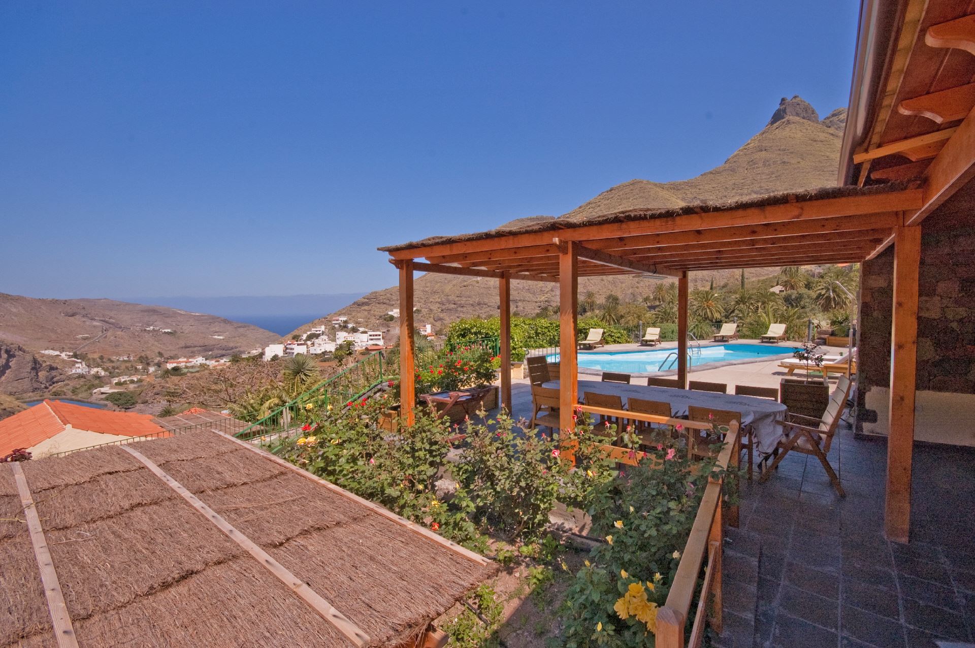 Der Landsitz Finca Barranquera liegt eingebettet in eine hügelige Landschaft an der untouristischen und idyllischen Westküste der Insel Gran Canaria. Oberhalb des kleinen und urigen Dorfes El Risco erstreckt sich das komplette Anwesen mit einem Areal von 42 000 m2 terrassenförmig mit seinen Obst-/ und Gemüsegärten an die Hänge der fruchtbaren Gegend auf einer Höhe von ca. 400 m. Die Räume sind mit rustikal-stilvollen, mexikanischen Möbeln ausgestattet. Ein idealer Ort um die Seele baumeln zu lassen und den atemberaubenden Weitblick auf die Berge und das Meer zu geniessen. Die letzten Meter zum Haus sind nur über einen unbefestigten Weg/Sandpiste zugänglich.