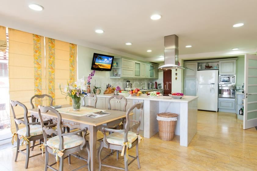 großzügige Küche mit Cerankochfeld, Backofen, Kühlschrank mit Gefrierfach, Spülmaschine, Mikrowelle