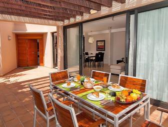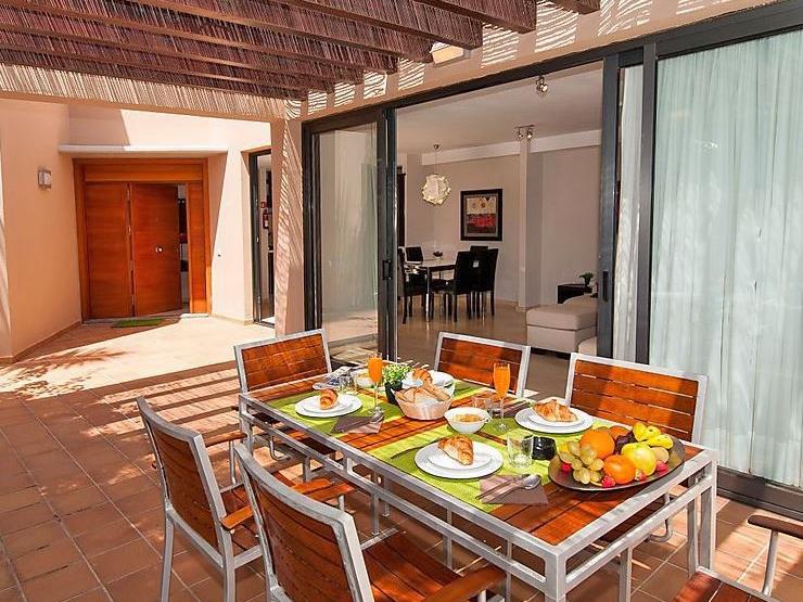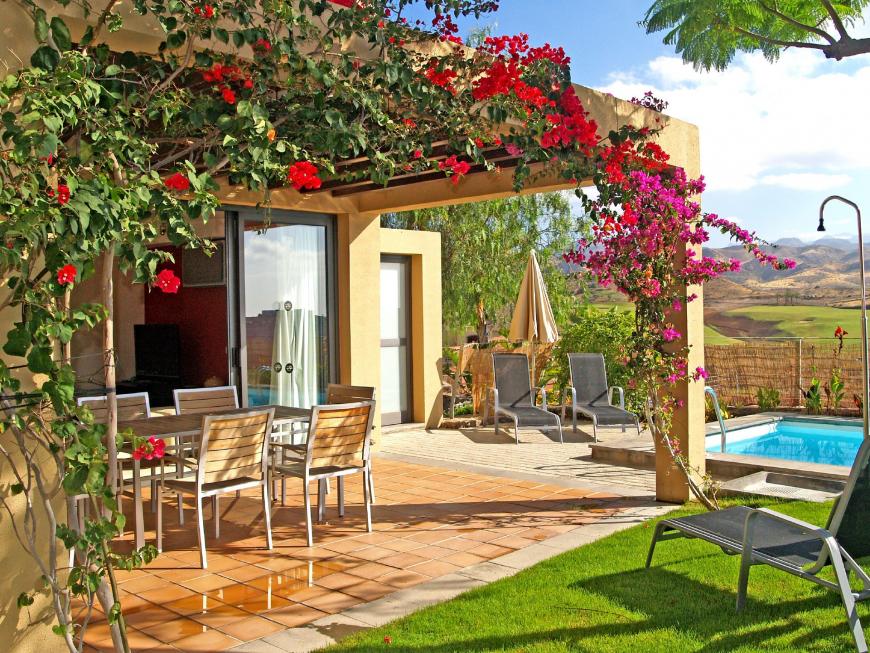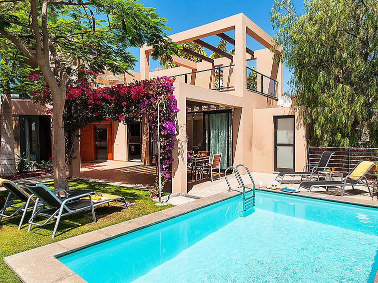 Die Villa Tamarit liegt am 2 x 18 Loch-Golfplatz von El Salobre Golf in herrlicher Süd-Ost-Hanglage. Von der großzügigen Terrasse des Feriendomiziles kann man den Blick auf die bizarre wüstenähnliche Umgebung und den Golfplatz geniessen. Die doppelstöckige Villa ist individuell gestaltet und verfügt über eine komfortable Einrichtung in einem zeitgenössischen Design. Durch die Fensterfront im Wohnzimmer der Ferienvilla in Richtung Terrasse und Pool kann man die Morgensonne genießen. Pflanzen und Sträucher umgeben den kleinen Garten und bieten dadurch eine angenehme Privatsphäre für erholsame und entspannende Urlaubstag. Die Serviceleistungen des nahegelegenen Hotels Sheraton Salobre Golf (s.h. "Extras") können gegen Aufpreis mitbenutzt werden.