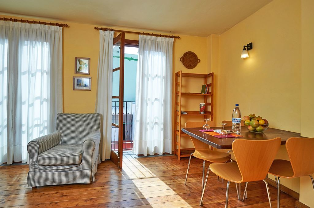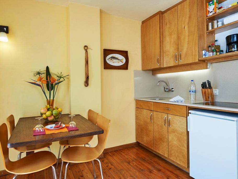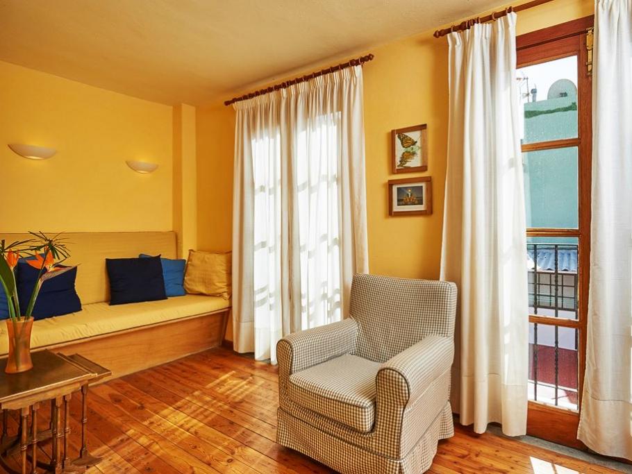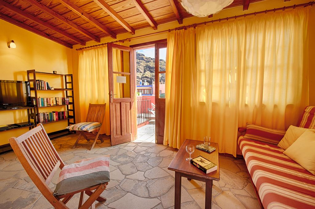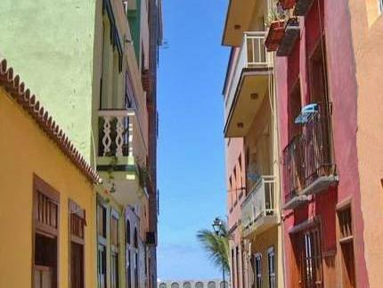 Das Appartement Canistel liegt im malerischen Altstadtkern von Puerto de Tazacorte. Hier findet man noch beschauliches palmerisches Treiben. Das 2001 erbaute dreigeschossige Haus wurde dem Stil des Altstadtkerns angepasst. Das moderne und freundlich eingerichtete Appartement ist auf zwei Ebenen angelegt. Über eine Wendeltreppe gelangt man in die oberen Wohnräume und die große Dachterrasse. Von hier aus hat man einen herrlichen Blick auf die Berge und das Meer.