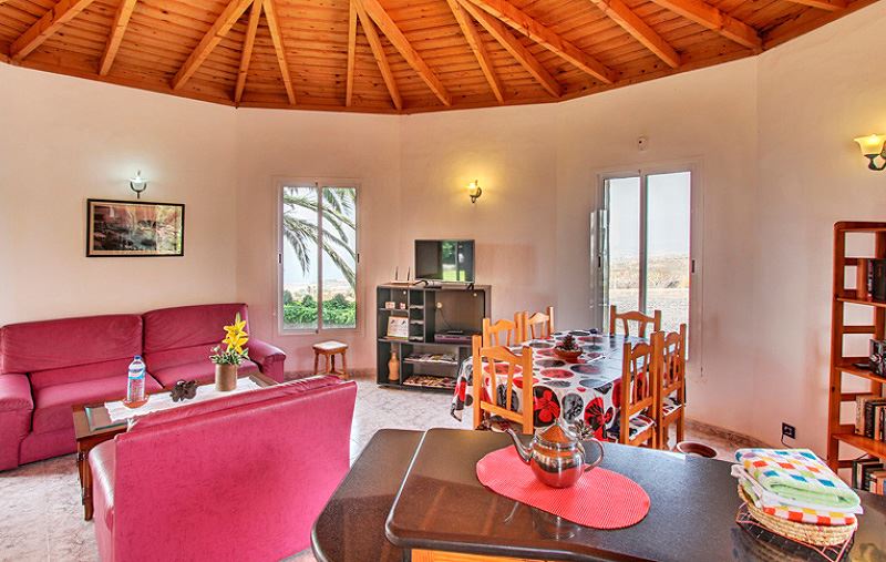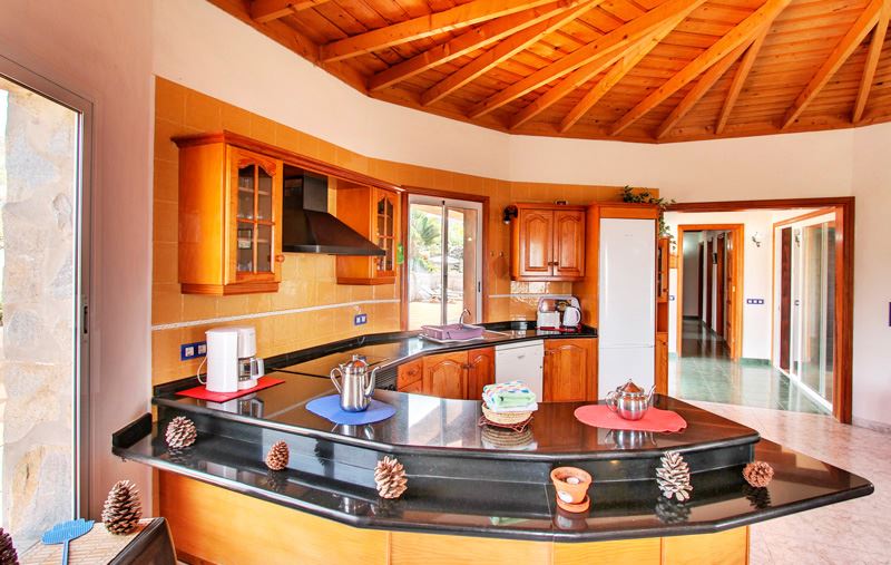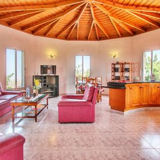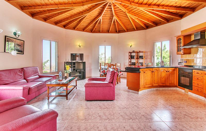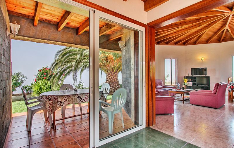 Durch die Holzdecken und das einmalige Flair eines inseltypischen Natursteinhauses findet man in der freistehenden Casa Rocío ein gemütliches Ambiente. Aufgrund der Hanglage etwas oberhalb des Ortes Todoque in ca. 350 m Höhe und den verschiedenen Terrassen rund um das Ferienhaus kann man den freien und wunderschönen Blick über die Insel La Palma genießen. Auch die großen Fenster im Wohnzimmer, mit einer traumhaften Weitsicht bis auf das Meer, tragen zu einem entspannenden Wohngefühl bei.