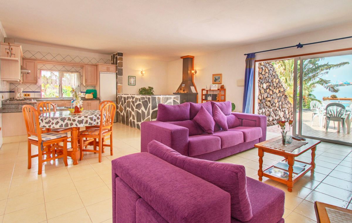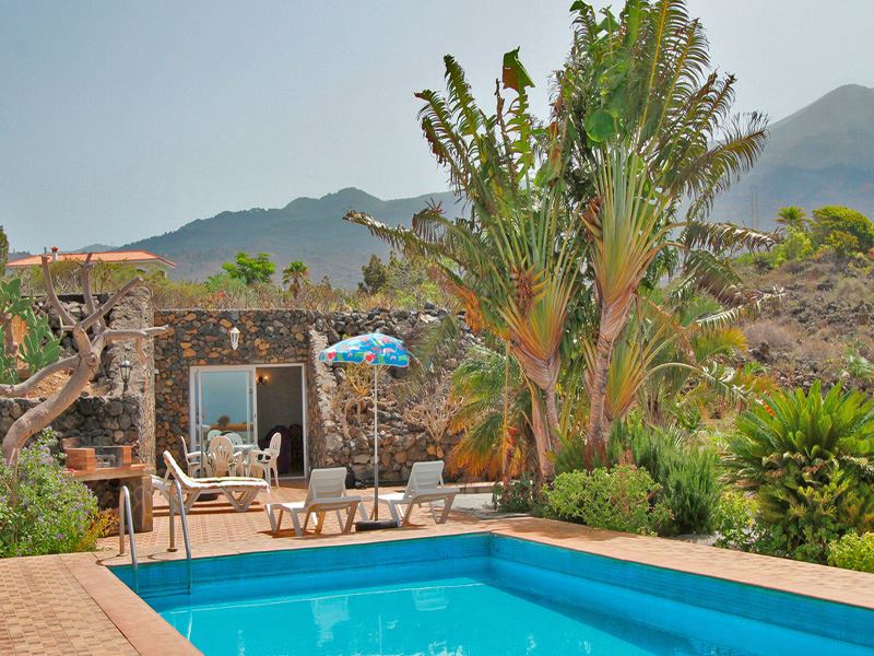 Die Casa Cumbre liegt auf ca. 325 m Höhe an der Westküste von La Palma in dem ruhigen und ursprünglichen Ort Todoque. Das lichtdurchflutete Ferienhaus hat durch die schöne Fassade aus Natursteinen ein besonderen und einzigartigen Flair. Auch bei der Innenausstattung wurden dekorative Steinelemente verwendet. Die Einrichtung besticht durch gemütliches und sympathisches Mobiliar unter anderem mit einer kuscheligen Kaminecke für kühlere Abende. Durch die Hanglage kann man herrliche Ausblicke auf die Umgebung und das Meer genießen.