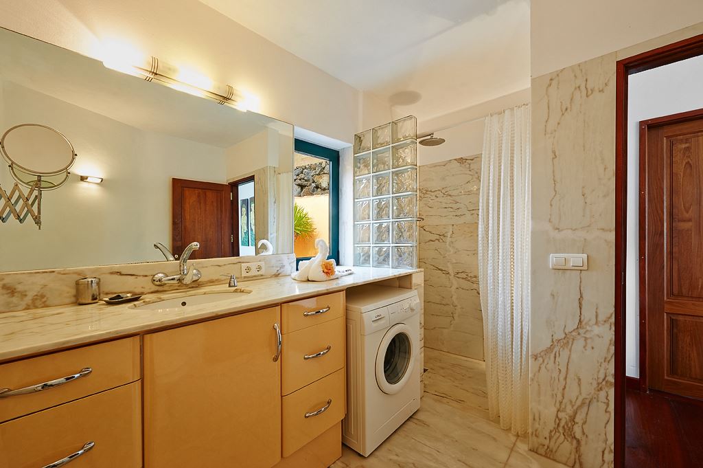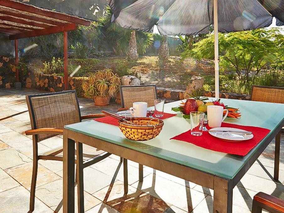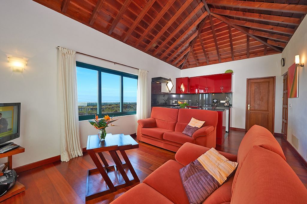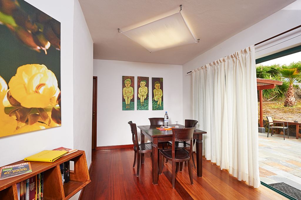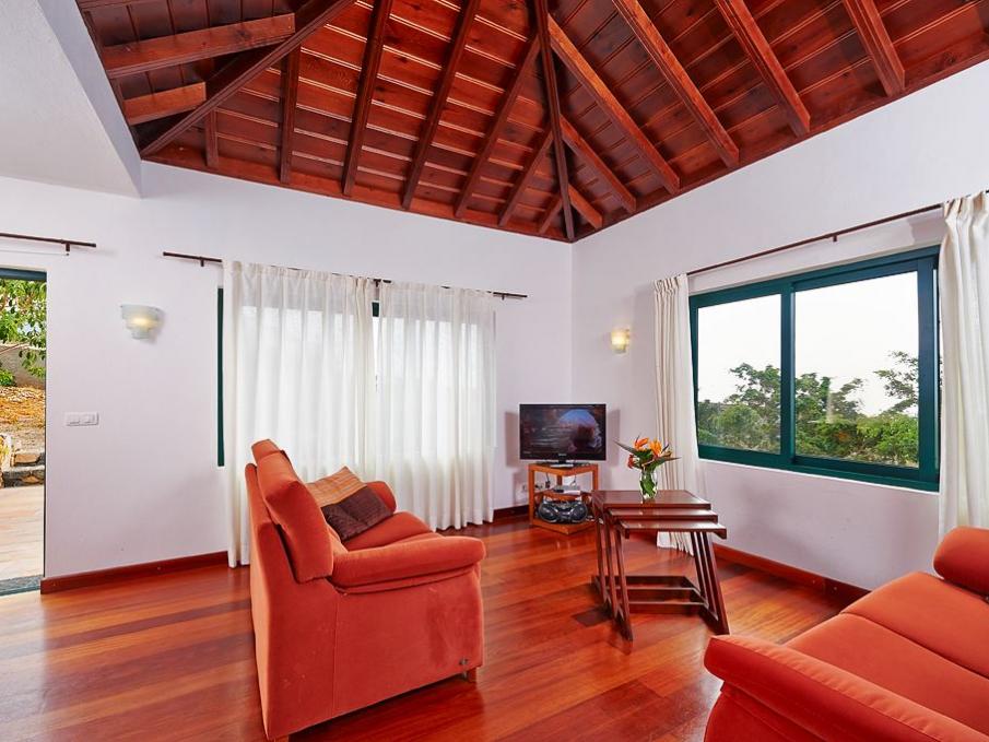 Die freistehende, individuelle Casa Marquesa liegt in dem Gebiet Las Norias abajo ca. 95 Meter über dem Meeresspiegel an der sonnenverwöhnten Westküste der Insel La Palma. Der ca. 40 m2 große Wohn-Eßsalon mit seiner kanarischen Holzbalkendecke und dem Mahagoniparkett bietet ein beeindruckendes Wohnerlebnis und einen sonnigen Flair mit direktem Zugang auf die Südterrasse mit Meerblick und Aussicht auf die umliegenden Bananenplantagen. Die geschmackvolle Inneneinrichtung mit modernen, zeitgenössischen Mobiliar sorgt für ein elegantes und äußerst ansprechendes Ambiente.