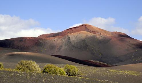 Parque Nacional de Timanfaya Wie eine bizarre Mondlandschaft erstreckt sich die ca. 200 m2; große Region bestehend aus erkalteten Lava, Kratern und zumeist sich in dunklen, rosaroten Farbtönen präsentierenden Vulkanhügeln über den Südwesten der Insel. Die Erdkruste dieses gigantischen Kratergebirges ist an manchen Stellen nicht dicker als einige Meter. Darunter werden Temperaturen von über 400 Grad gemessen. Der Besuch dieses Naturschauspiels ist ein Muss für jeden Besucher der Insel.