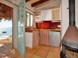 offene kleine Küchenzeile bzw. Küchenecke mit Gasherd, Kühlschrank