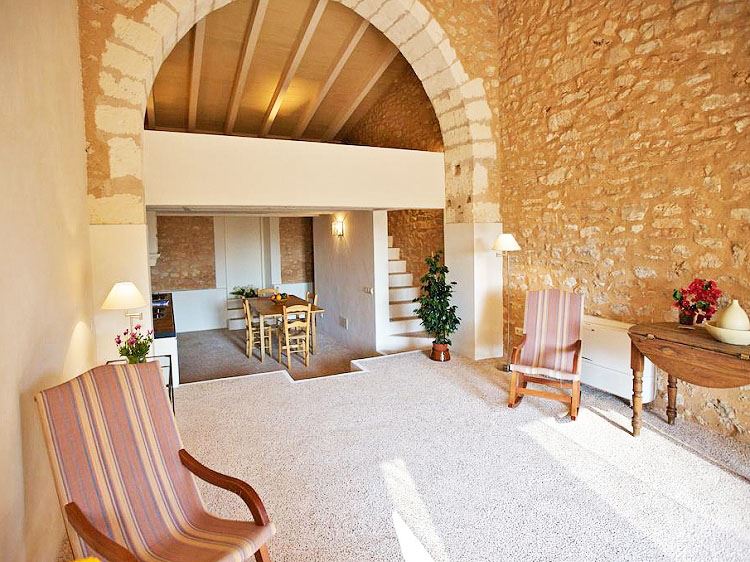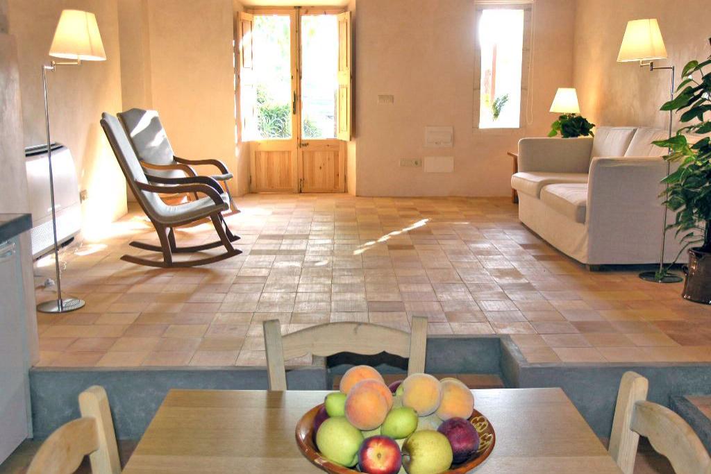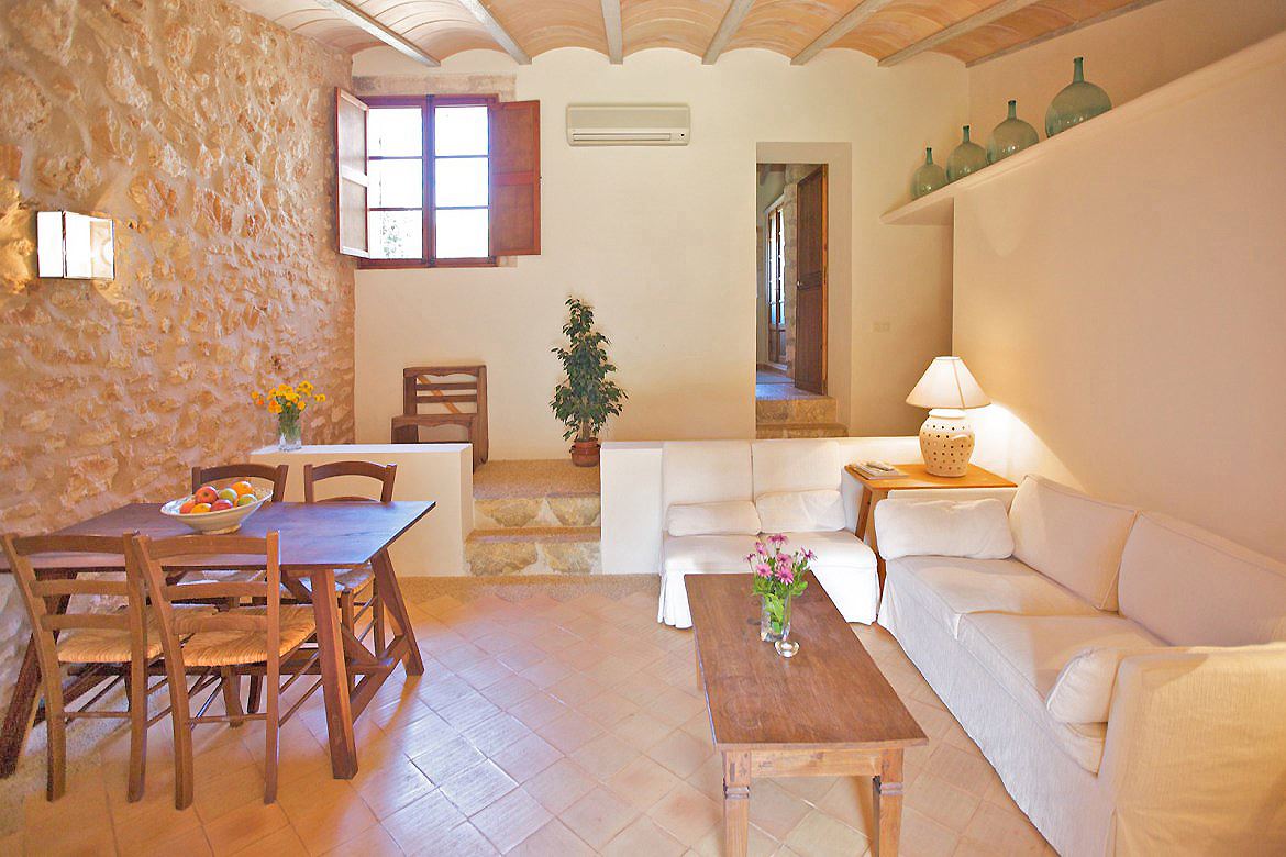 Die Appartements Bicolor (gesamt 9) mit ihrem gemütlichem, modern- mallorquinischem Mobiliar aus teilweise handgefertigtem Baumwollstoffen liegen idyllisch in der Nähe des Ortes Porto Cristo im Osten der Insel Mallorca. Die unterschiedlich großen Appartements mit einem oder zwei Schlafzimmern verteilen sich auf drei Nebengebäude des ländlichen und ursprünglichen Gehöfts mit Schafweiden, Hühnern, Obstgärten und Pinienwäldern. Die kleine eigene Badebucht (je nach Wetterlage als kleine Sandbucht oder Felsstrand) befindet sich ca. 1 km von dem Finca-Anwesen entfernt. Die Wohnungen sind mit klaren, hellen Farbtönen und sehr geschmackvollen, rustikalen Möbeln ausgestattet. Der Zufahrtsweg (ca. 1,2 km) zum Fincaanwesen ist nicht geteert.